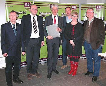 Von links: Jens Paulsen (KLN), Martin Schlünß, Dr. Frank Nägele, Kai Vogel (MdL, verkehrspolitischer Sprecher der SPD-Landtagsfraktion),